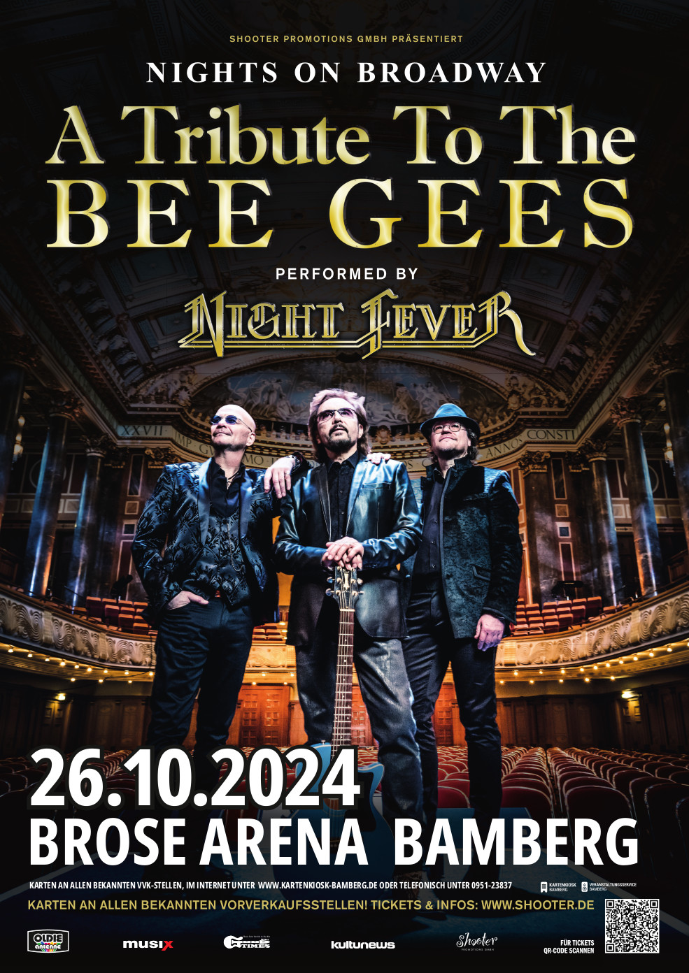 Seit 2007 sind Nights on Broadway auf den Bühnen in ganz Europa, sowie in zahlreichen Fernsehsendungen zu sehen – NIGHT FEVER. Mit ihren Shows begeistern sie seit Jahren BEE GEES Fans in vielen Ländern. Alleine in Holland und Belgien sind diese schon fast süchtig, was sich in ausverkauften Hallen und einer frenetischer Stimmung zeigt. Durch ihre authentische Interpretation gepaart mit modernen Arrangements sind NIGHT FEVER schon lange nicht mehr wegzudenken aus dem Tribute-Bereich. Viele Fans reisen der Band sogar aus verschiedensten Ländern regelmäßig hinter her, um ihre Show so oft wie möglich erleben zu dürfen.